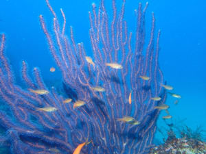 遠くからでもキビナゴの群れやメジナの群れ、ネンブツダイが群れているのががよくわかります。