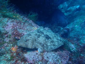 大きなヒラメは砂地からやってきて、岩場で一休みしたと思ったら、