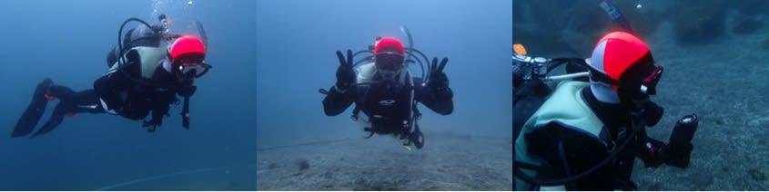 初日は風が強く遠くには白波も見え、水面スキルが大変でしたが、潜ると穏やか