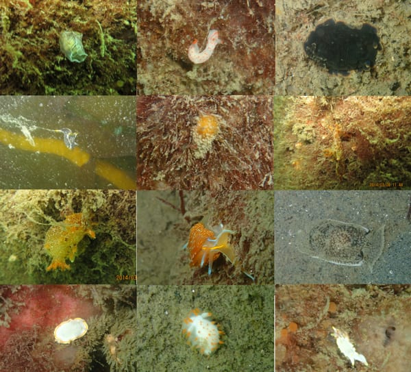 ミスガイ、アカボシウミウシ、クロシタナシウミウシ、クロコソデウミウシ、イソウミウシの一種、ベッコウヒカリウミウシ、エムラミノウミウシ、ウミフクロウ、ミツイラメリウミウシ、コトヒメウミウシ、などなど。次回もいっしょに楽しんでやりましょう♪