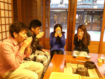今シーズン最後のチゲ鍋を堪能するメンバー。