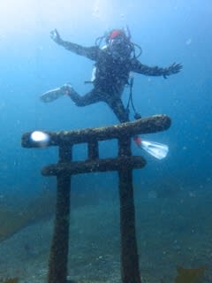 初ダイブーーーーーーー!!では水中神社に安全祈願に行きましょう♪