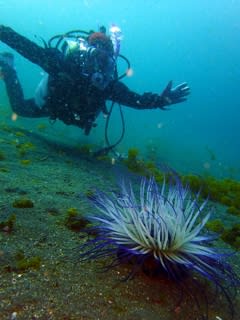 きれいなイソギンチャクといっしょに2ショットを撮りましょう♪中性浮力がしっかりとれてダイバー感が満載です♪