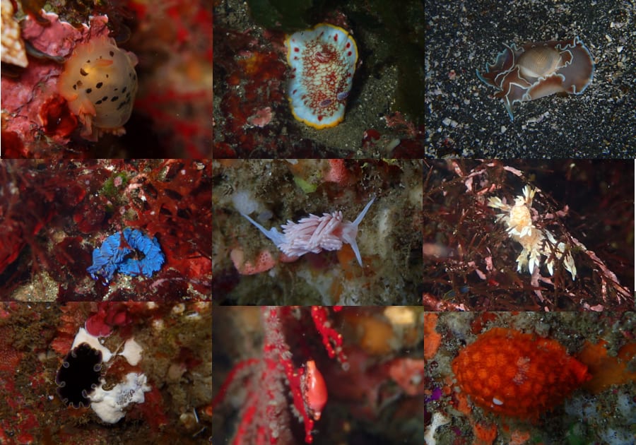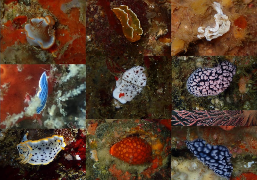 スミゾメミノウミウシ・アオウミウシ・ムカデウミウシ・サラサウミウシ・サガミミノウミウシなど。