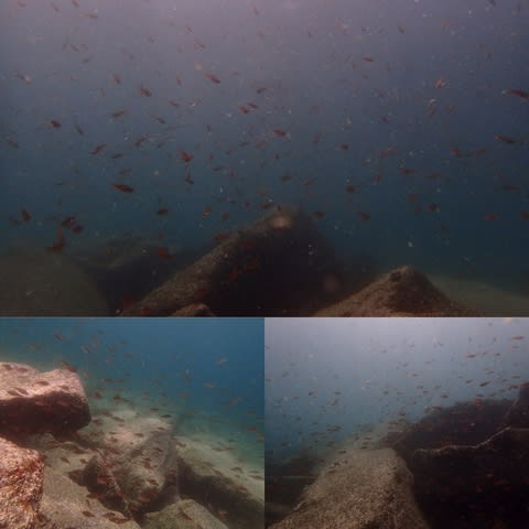 ゴロタ上はクロホシイシモチやネンブツダイや、スズメダイなどの幼魚で賑わっていました。