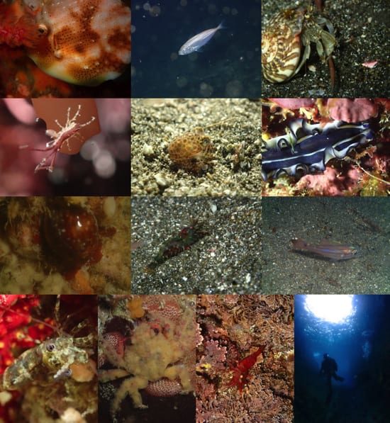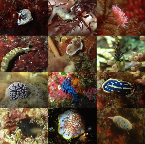 スイートジェリーミドリガイ、ヒメメリベ?、サクラミノウミウシ、ハナミドリガイ、キャラメルウミウシ、ヒメクロモウミウシ、コイボウミウシ、ムカデミノウミウシ、アオウミウシ、クロヘリアメフラシ、サラサウミウシ、シロウミウシなどなど。