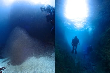 ナイトADVコースツアーでは、昼間のダイビングの際、夜に潜る時と同じルートでまわります。