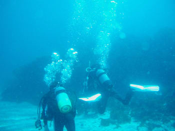 日の光が差し込んで青い海をさらに明るく照らしてくれていました