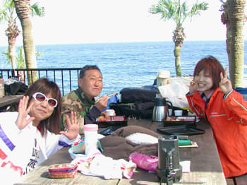 お昼はポカポカ陽気の中、海洋公園にて青空弁当です