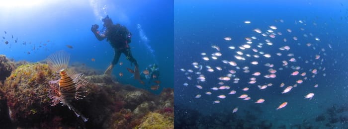 産卵床までの道中はミノカサゴやスズメダイの群れ。
