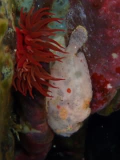 穴の奥で確認しづらいベニカエルアンコウ。