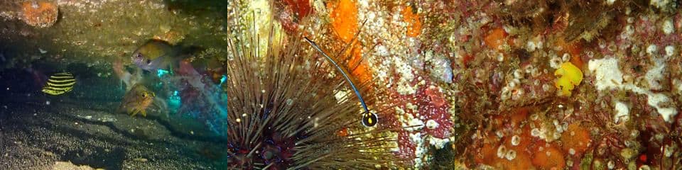 ケーソンの下には、カゴカキダイや、スズメダイ、メバル、カサゴ、ゴンスイ等々、様々な魚達が潜んでいました。