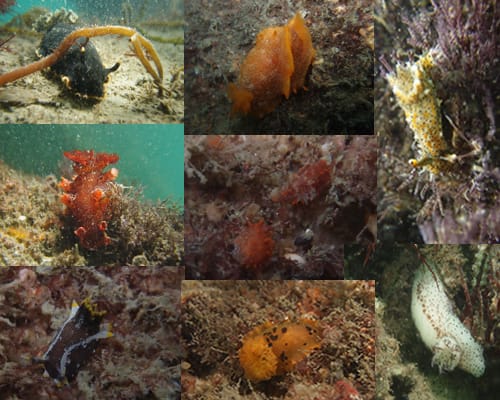 クロシタナシウミウシ、ベッコウヒカリウミウシ、フジタウミウシ、