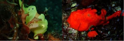 水中は、可愛いサイズのイロカエルアンコウ色違いバージョン!レモン色の方が人気高し?!