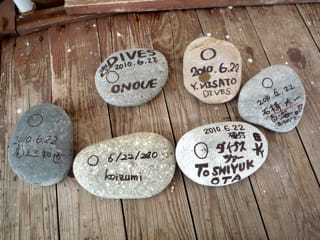 自分で選んだ石に、思い思いに名前を書いたりマーキング