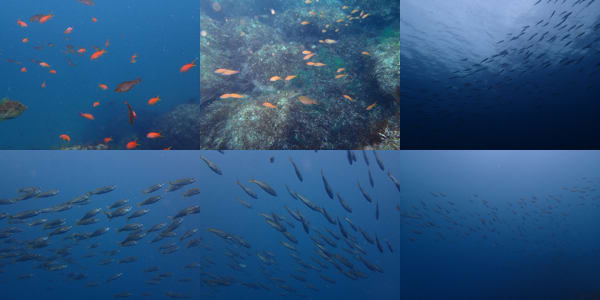 ゴロタの上にではキンギョハナダイやアカカマス、ムツ、ネンブツダイ、