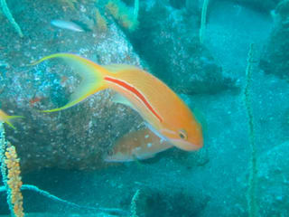 その他見られた生物は、カスザメ、ホシエイ、タカベ群、セミホウボウ、サクラダイ、