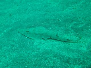 などを観察し、砂地へ向かうと、サカタザメが隠れていました。