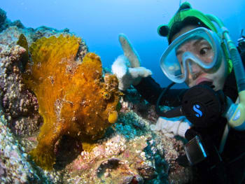 これは何でしょ〜♪初めて見るカエルアンコウにびっくりするカエルちゃんです。笑