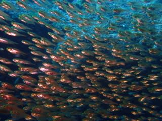 なんと!!なんと!!洞窟で入り口にはイサキやキンメモドキの群れ群れ群れ〜〜〜〜〜!!!