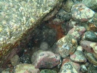 ゴロタの上で、マダコを見つけたようです
