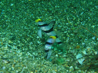 恐る恐る海に入っていきましたが、ネンブツダイやクロホシイシモチ、