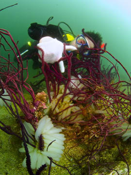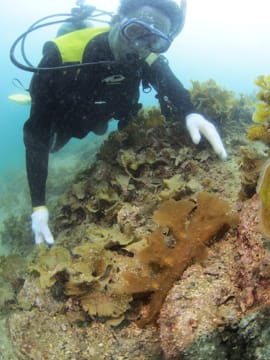 なんですかこれーーーーー!でっかーい!!それも泳ぎますよ〜!ムカデメリベでしょうか。あちこちで海藻の中に隠れてました。