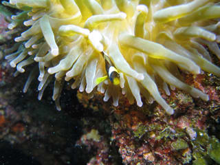 イソギンチャクにはクマノミの幼魚やイソギンチャクエビなどが見られました