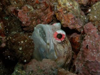 巣穴にフタをしようとしているジョーフィッシュ