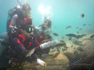 水中に少し慣れた頃に、餌付けを少し楽しみました