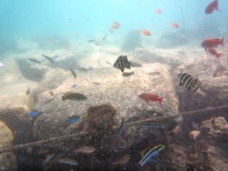 ゴロタ付近では、キンギョハナダイやスズメダイが群れていて、