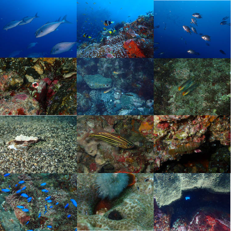 浅場では、オヤビッチャやイトヒキベラ、シマハギやモンツキハギの幼魚がいました。