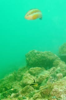 いつものサンゴには、季節来遊魚が。