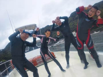 天気がイマイチだったのでボートの上ではボートコートが大活躍役でした