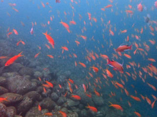 湾内以外初めて潜られたので、キンギョハナダイの華やかな群れに圧倒されていらっしゃいました