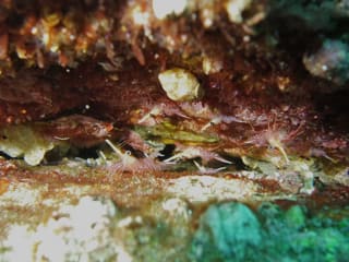 ゴロタの隙間にいっぱいいるサラサエビ