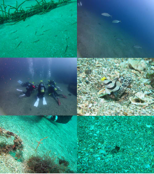 沖のブイ周辺にはハタタテダイの子供の小群れが元気に泳いでいて、