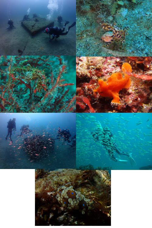 ケーソンにはヤマドリやハナタツ、オオモンカエルアンコウ、ヒョウモンダコが見られ、