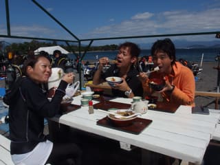 水中では、とってもきれいなエビさん狙いで深場へ向かいましたが、2本とも見つからず~~でしたが青空ランチで気分爽快な1日でした。