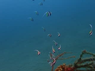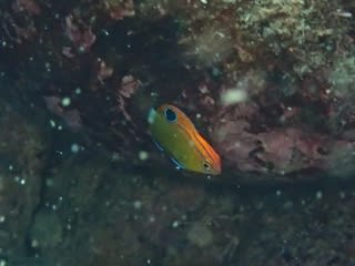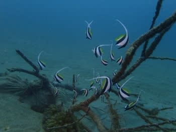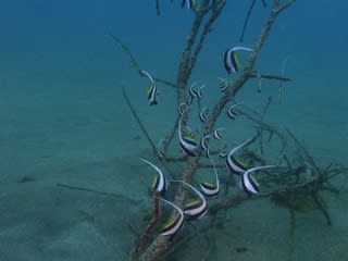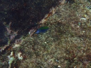 浅場では、セダカスズメダイやメガネスズメダイの幼魚がちょろちょろしていますので、