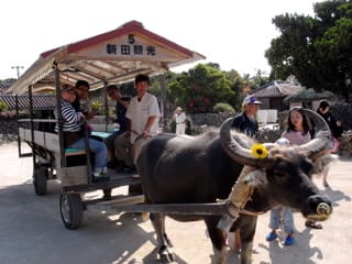 八重山の伝統が息づく街並を水牛車に揺られながら
