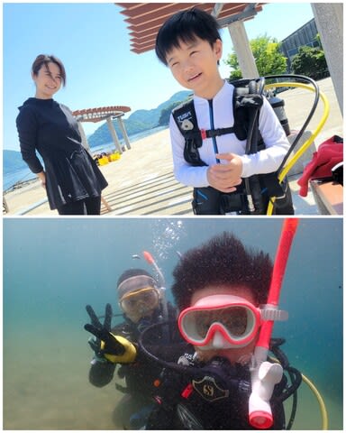 体験ダイビングの仲良し親子♪ホンダワラの林で遊びました。魚も自身で発見したり、めっちゃ落ち着いてるーライセンス取得もお待ちしてまーす